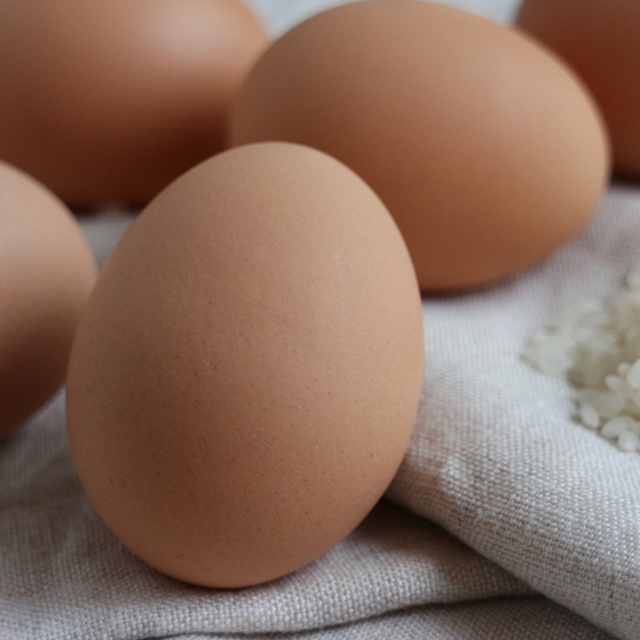 愛媛県産のお米と植物性たんぱくを食べた鶏が産んだ真っ白な黄身の卵です。全卵を使用しても真っ白に仕上がるので、新しい卵料理の提案が可能です。また食料自給率アップに少しでも貢献できればという思いも込められています。